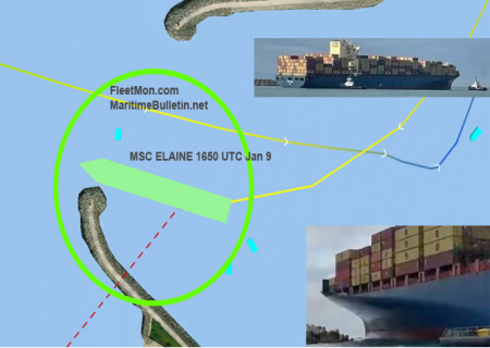 Breaking: Container ship ran aground, blocking access to the port On January 9, MSC Elaine, a container ship owned by MSC with a capacity of 8,562TEU, was leaving the Italian port of Gioia