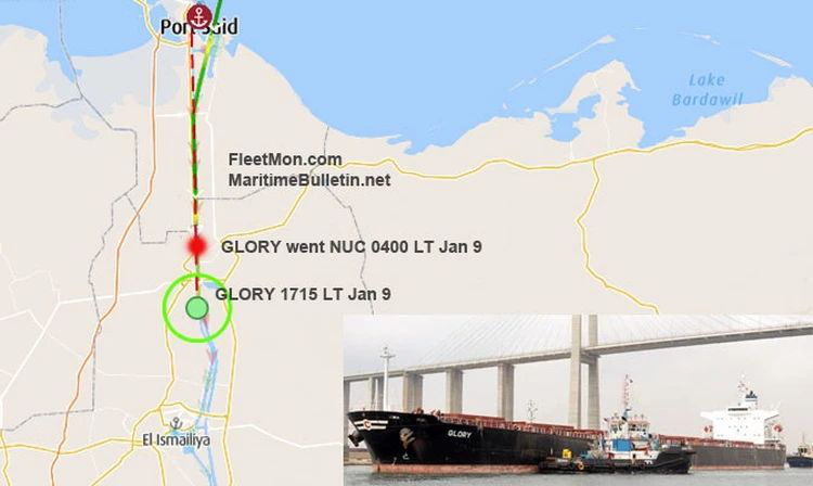 A cargo ship carrying Ukrainian grain ran aground in Egypt's Suez Canal on Jan. 9, the Suez Canal Authority said, temporarily disrupting traffic in a waterway vital to global trade. The administration said the ship, M/V Glory, ran aground due to a "sudden technical failure." The ship has been refloated and taken away by tugboats for repairs, and traffic in the canal has not been affected by the grounding, said Usama Rabeeah, chairman of the canal authority.
